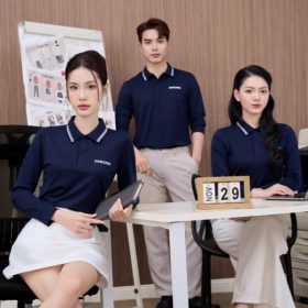 Mẫu áo polo đồng phục công ty dài tay Samsung màu xanh đen được Hải Anh Uniform cho ra mắt đã nhanh chóng thu hút sự quan tâm của khách hàng nhờ thiết kế thanh lịch, trẻ trung. Sản phẩm sở hữu chất liệu bền đẹp, dễ ứng dụng trong môi trường công sở, hứa hẹn trở thành lựa chọn phù hợp cho nhiều doanh nghiệp trong thời gian tới.