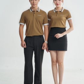 Lấy cảm hứng từ sự điềm đạm và quyền lực, áo đồng phục polo sử dụng tông nâu cafe làm chủ đạo, mang lại vẻ đẹp cổ điển tràn đầy hơi thở hiện đại. Sự phối hợp tinh tế với các đường line trắng tại cổ áo, bo tay và cầu vai chính là điểm nhấn nổi bật của thiết kế. Những chi tiết này giúp trang phục thoát khỏi sự đơn điệu, trở nên trẻ trung và năng động hơn.