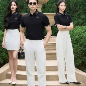 Với thiết kế tinh gọn, đường may tỉ mỉ và gam màu đen lịch lãm, mẫu đồng phục công ty Timeless mang đến diện mạo hiện đại, chuyên nghiệp. Đây là lựa chọn giúp doanh nghiệp tạo dấu ấn thương hiệu và khẳng định sự khác biệt.