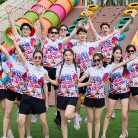 Áo thun đồng phục team building gây ấn tượng bởi sự phối hợp màu sắc đầy nghệ thuật và tinh tế. Trên nền vải trắng tinh khôi, các dải màu nóng đan xen tạo nên một “bản giao hưởng” rực rỡ đặc trưng của không khí mùa hè. Nhờ công nghệ in chuyển nhiệt tân tiến, các họa tiết trên áo thun team building Summer 01 được thể hiện sắc nét và giữ màu bền bỉ trong mọi hoạt động ngoài trời.