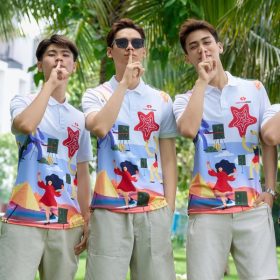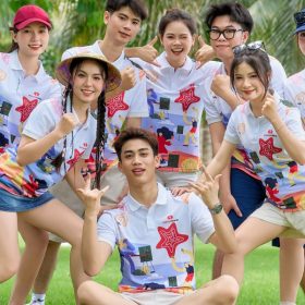 Điểm nổi bật của áo thun team building Summer 02 là sự phối hợp màu sắc bắt mắt. Nền áo sáng được kết hợp với các mảng màu rực rỡ, các họa tiết minh họa vui nhộn gợi lên không khí sôi động của mùa hè. Khi cả đội ngũ cùng mặc mẫu áo này, tổng thể sẽ tạo nên một hình ảnh đồng bộ, nổi bật và đầy năng lượng trong các chương trình team building.
