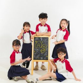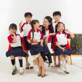 Mẫu Đồng Phục Mầm Non Màu Trắng Phối Đỏ