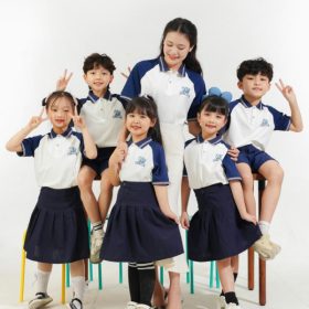 Mẫu Đồng Phục Mầm Non Màu Trắng Phối Xanh Đen
